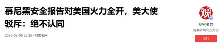 据观察者网报道,一年一度的慕尼黑安全会议即将召开,然而在预热阶段,欧洲这边就已经按捺不住愤怒,开始对美国“全面开火”了,一份以“遭遇破坏”为主题的报告,展现出了欧洲人此刻的失望。