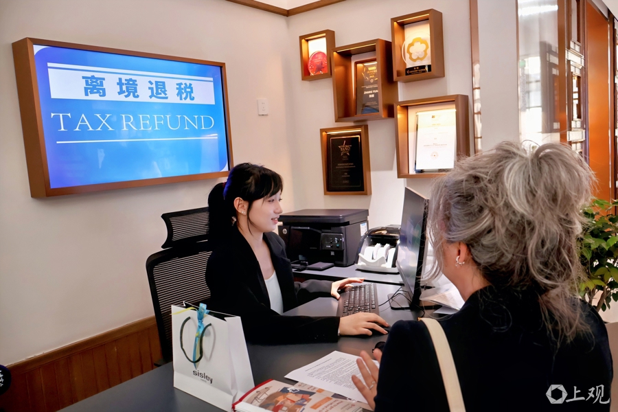 在张园离境退税集中办理点,作为全市首批跨区域退付枢纽,这里实现了“一次购物、全市通退”,大幅降低游客退税时间成本;在恒隆广场落地了全市首笔自助终端“即买即退”业务,完成从“人工办理”到“智能秒办”的迭代,平均退税时间缩短60%以上,让便捷消费触手可及。